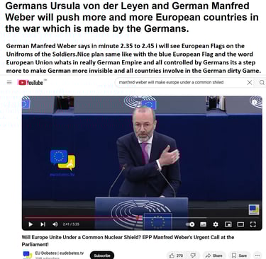 Democracy and human rights are the new weapons of the Germans. Just as you can use a gun for offense or defense, for good or evil, so you can use democracy and human rights for good or evil.The Germans, WHO DO NOT HAVE DEMOCRACY, as you will see on the website, want to impose democracy and human rights on other countries with all their might, but what does it look like for the Germans? First, you use democracy to bring in other countrys people with no political experience and little wisdom and intelligence to power so that you can later take control of that country more easily. If the coup or uprising fails, they use human rights to help the protesters by allowing them to demonstrate, you can't jail them, you can't hit them, etc. You support the protesters with all your might so that the state coup will succeed in the end - that's how the Germans use democracy and human rights to take over other countries. But what democracy and human rights look like for them and what they do in the German Empire ( European Union fake name for blind people ), see the reports.You will see Germans ruling , blackmailed countrys from germans , pressure from germany to other countries , lies and decisions behind closed doors .Enjoy the reports about the German Empire.