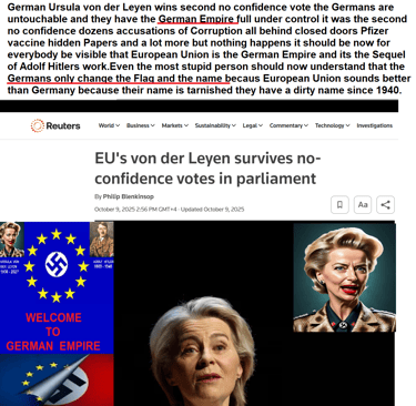 How is this website structured? It is structured according to the system of a court to better see and understand everything. When a criminal stands before a judge, accused, for example, of bicikle theft, which isn't actually such a serious crime, then during the trial all his previous offenses will be listed, which provides a better picture and is a crucial point for his conviction. Only when you see everything that he have done over time do we get a better picture of this person. This website is structured in exactly the same way, to give a better impression and a better picture of the Germans and to see who they really are. Enjoy all the reports about the Germans who, because of their past, are now hiding behind the name of European Union and the Blue Flag with stars.